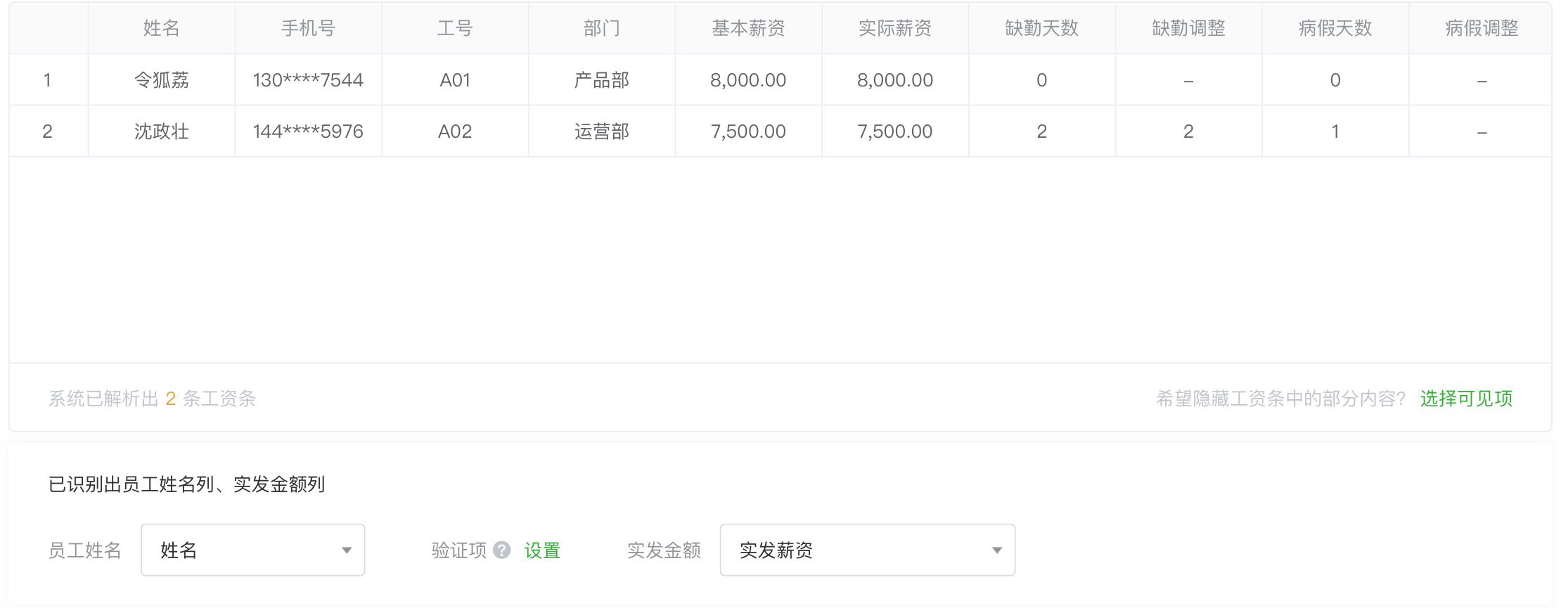智能识别工资表内容