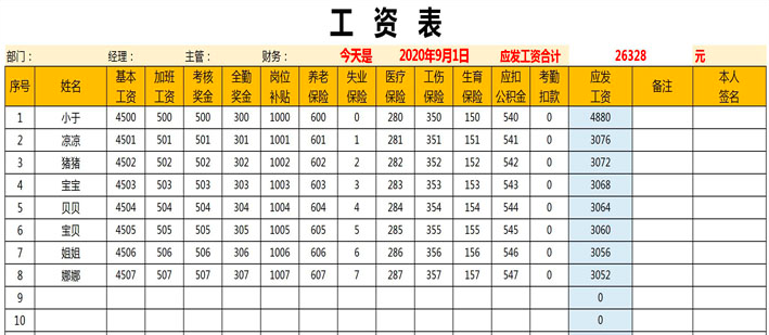 分享一份好看的表格模板——薪资明细表,薪资明细表用于HR记录员工薪资明细的表格,明细表格内含有基本工资、加班工资、考核奖金、五险一金等薪资明细,是一份好看实用的表格模板,HR直接下载作为员工薪资明细使用即可。